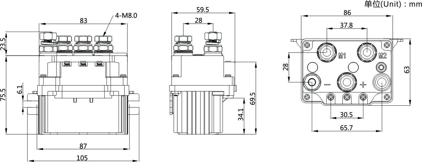 該產品具有兩組切換觸點,用于汽車電動絞盤配套、電信通信設備、工程機械、電瓶車、電動叉車、火車、船舶、不間斷電源等電控系統。