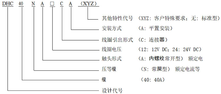 陶瓷密封系列高壓直流接觸器DHC40產(chǎn)品型號釋義