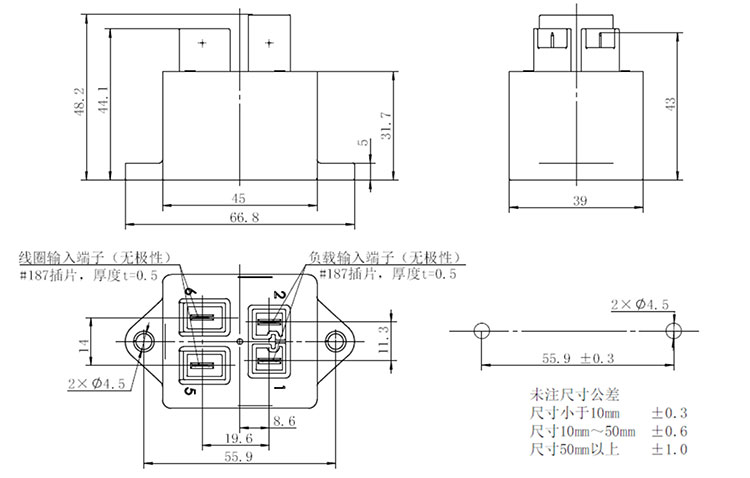 | 額定負載電流 | 10A 450VDC(4.5KW) | ||||