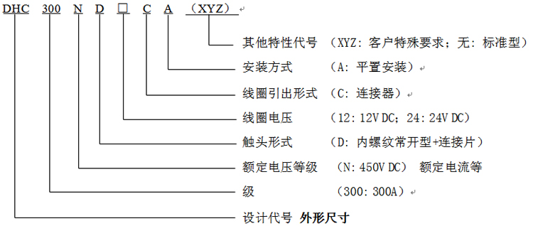 陶瓷密封系列高壓直流接觸器DHC300產品型號釋義