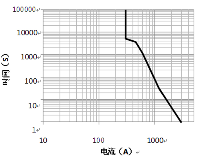 注:以上數據在環境溫度為 85℃,導線截面積≥100mm2條件下測得。數據僅作參考,請勿直接用 于選擇熔斷器