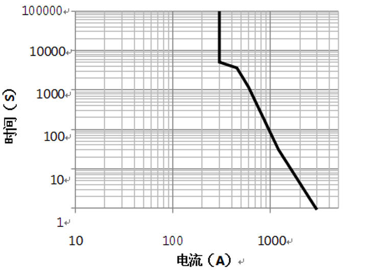 注:以上數據在環境溫度為 85℃,導線截面積≥120mm2條件下測得。數據僅作參考,請勿直接 用于選擇熔斷器